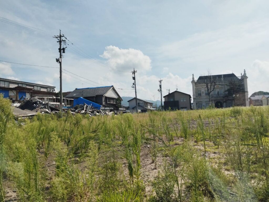 更に南下し有名な輪島の朝市がやっていた場所へ寄りましたが、雑草が生い茂り原っぱになっていました。