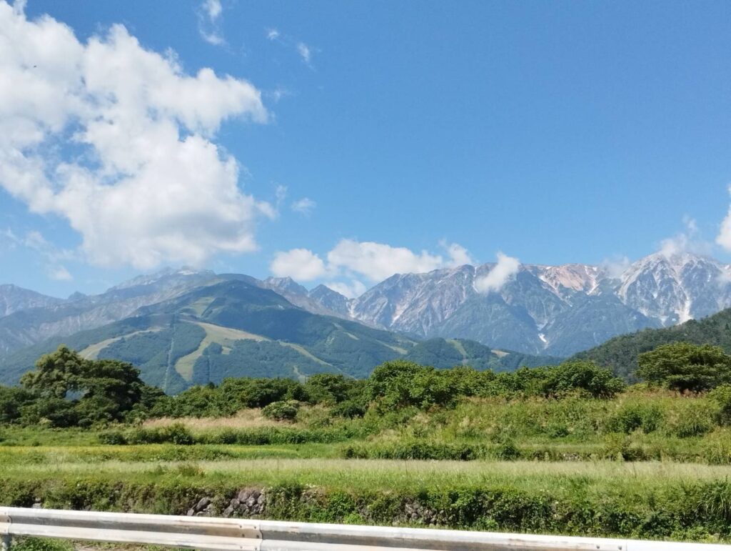 そして途中に見えて来る白馬岳は残暑の中、山頂には雪をたたえており絶景でした!! 終わり