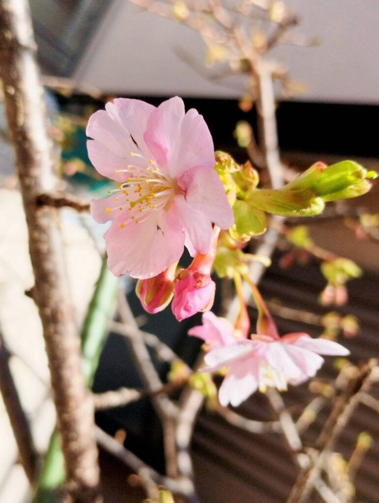 寒い中でも今年は例年より早く家の河津桜が咲き始めました♪