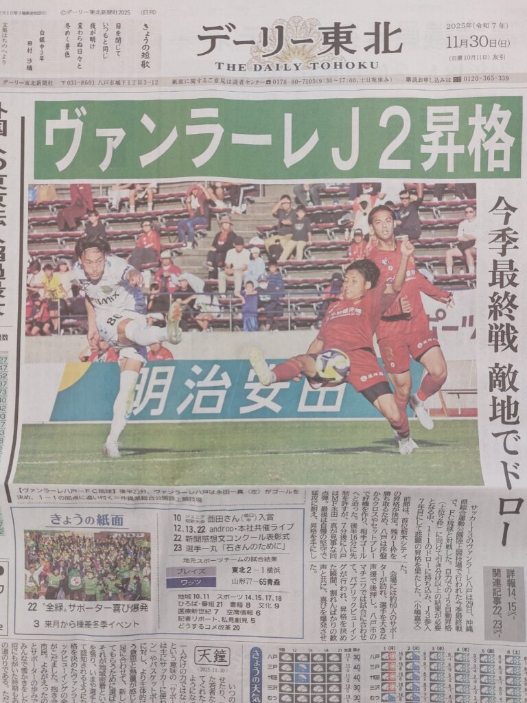 ヴァンラーレ八戸がJ2に昇格しました(o^―^o)