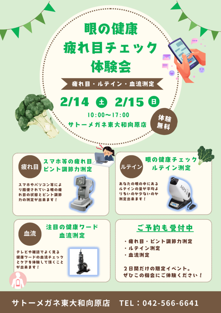 目の健康・疲れ目チェック体験会のお知らせ!!