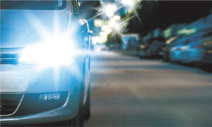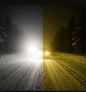 最近ではLED光源を使用したヘッドライトが多く、白いチラつきが多くなりました。