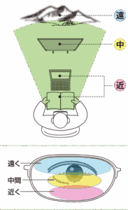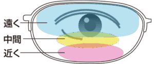 ↑遠近両用は運転したり、外出向きで遠くが見やすい範囲が大きく